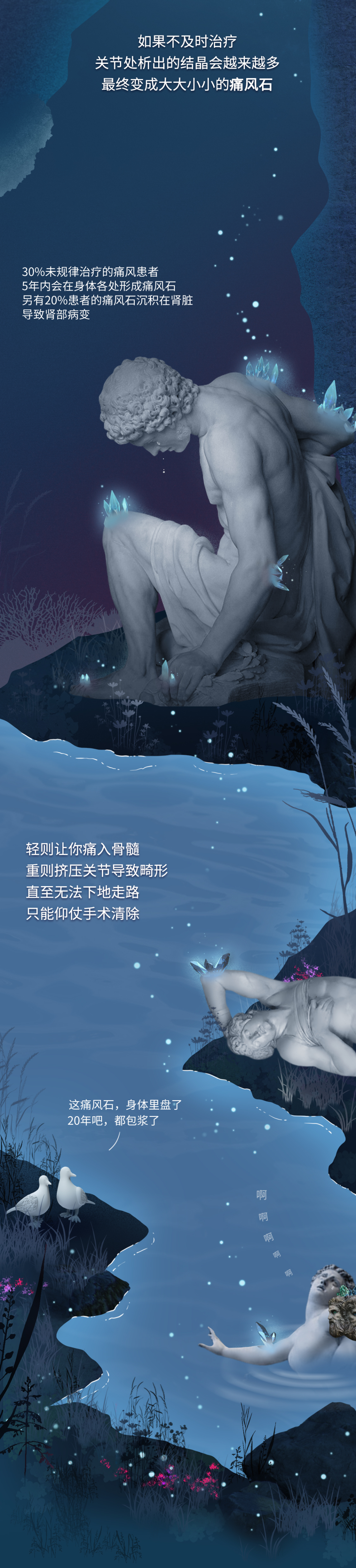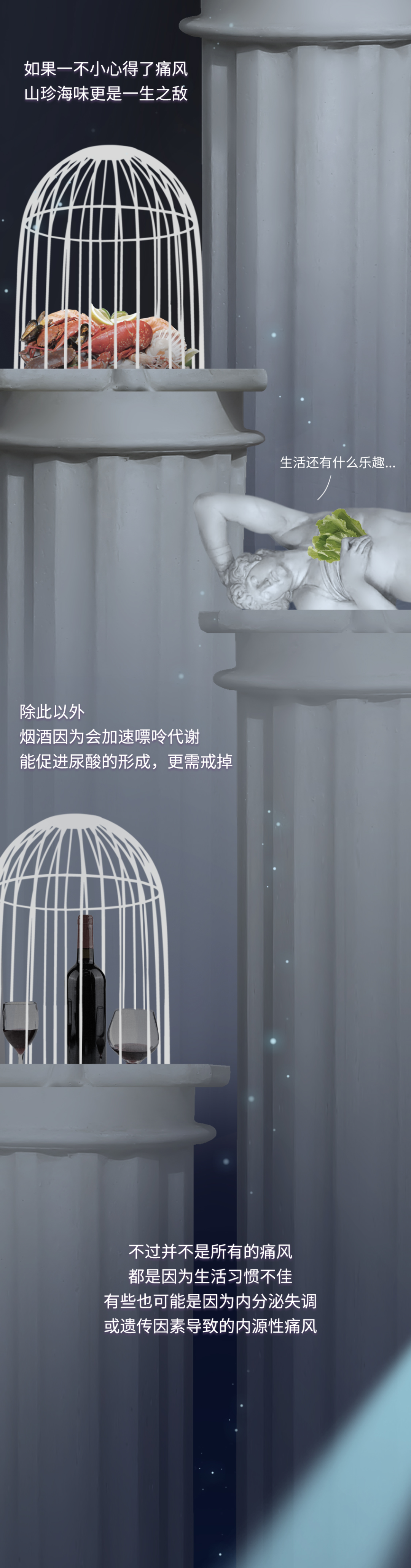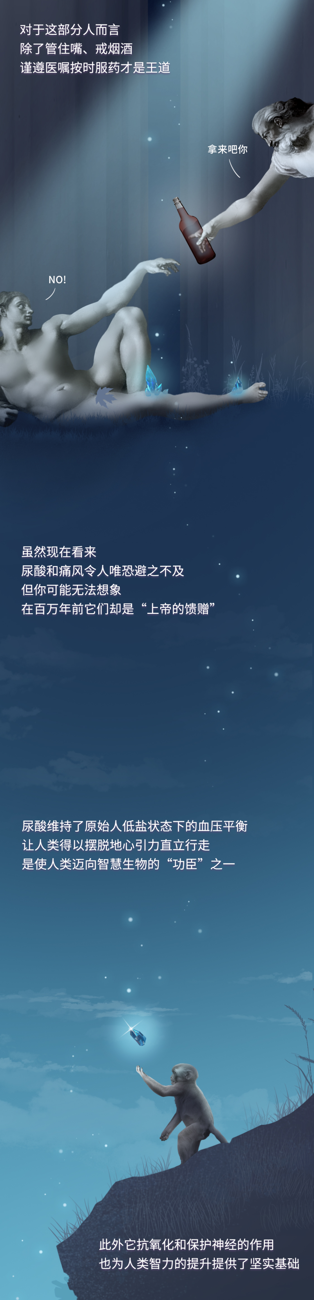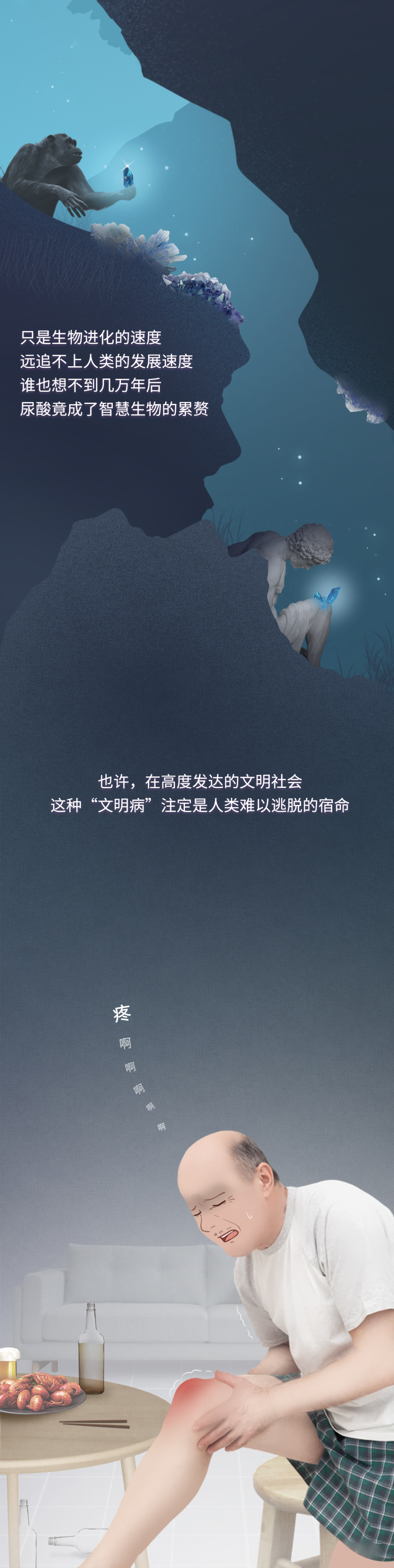 【写在最后】 除了人类, 自 然界要忍受痛风之苦的还有灵长类动物、鸟类和爬行动物。人们 甚至在霸王龙化石中也找到了痛风石的痕迹。不过 除此之外的其他哺乳动物没有痛风的烦