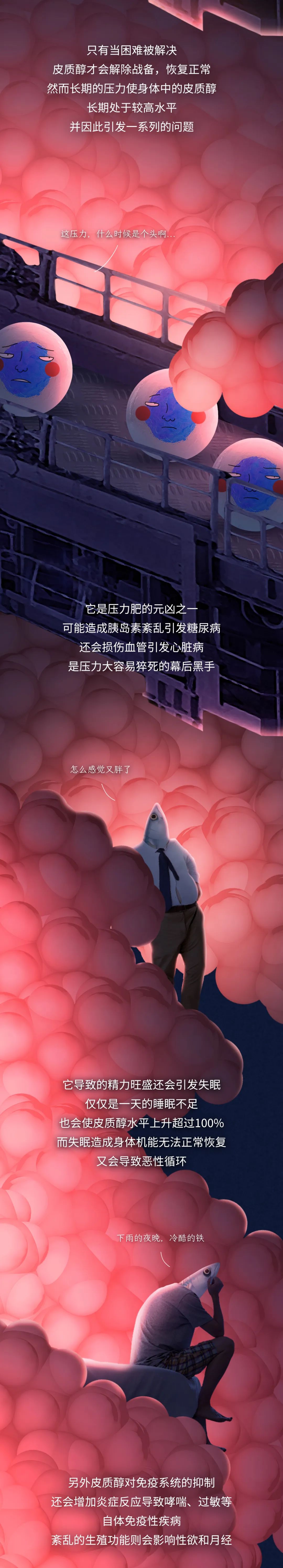 ·虽然压力并非一个明确的疾病,但它实实在在地影响着我们的心理及生理健康。学会如何处理压力,如何从心出发,对那些压力源感到释怀,可能将是现代智人在社会中修行的必修课。
