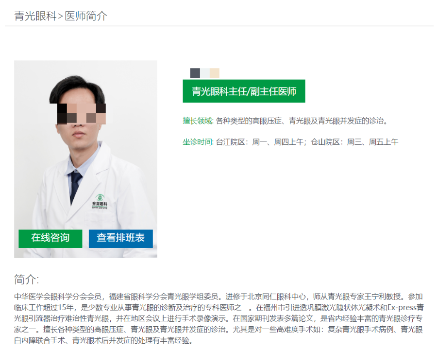 目前医院官网的青光眼科排班表上,两位医生已无排班信息。