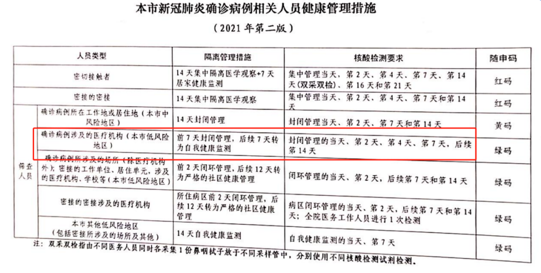 闭环管理期间,全院核酸检测分别需要在第1天、第2天、第4天、第7天、第14天进行,这部分工作也由医院内部消化。