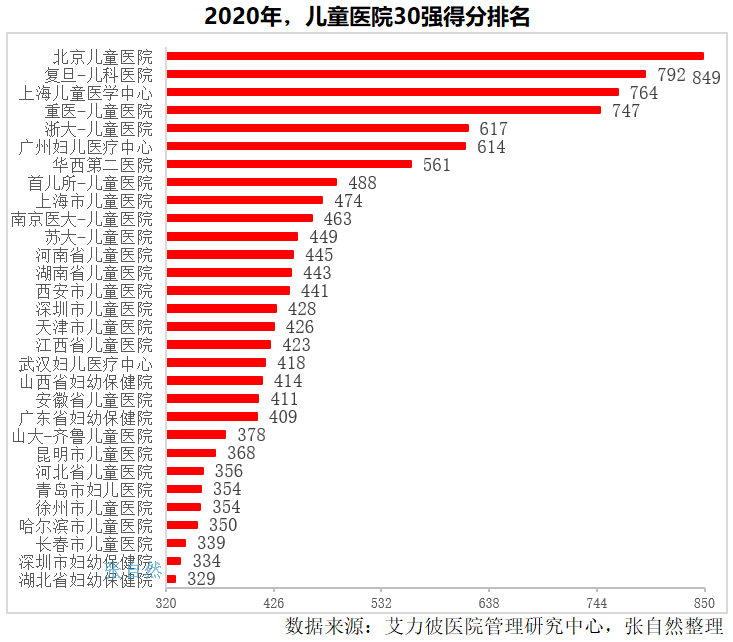 我国儿童医院数量逐年增多,而且儿童医院的实力都很强,知名度也很高,在知名医院排名机构艾力彼医院管理研究中心评出的2020年儿童医院50强中,首都医科大学附属北京儿童医院以849的高分独占鳌头,其次是重庆医科大学附属儿童医院、上海交通大学医学院附属上海儿童医学中心和复旦大学附属儿科医院分别位居第2-4位。